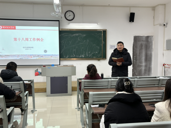 2024年1月3日,kaiyun开云官方在一教219召开第十八周教学工作例会。会议由吴玲院长主持,经济管理学院全体教师参加。