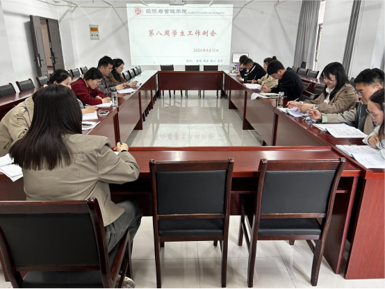 会上,首先由各辅导员就近期开展的学生工作和分管工作进行汇报,重点工作包括:2024年学生考研意向和填报公益辅导课程的统计、诚信金融主题活动策划、读书月系列活动以及班级朗诵活动的举办、诚信主题班会的召开、就业质量核查工作、第五期入党积极分子培训班统筹规划、校运动会运动员的选拔、毕业班学生第二课堂学分达标情况统计以及其他日常管理工作。
