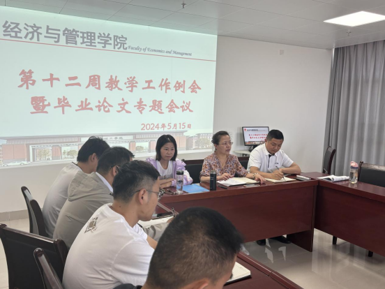 2024年5月15日下午,kaiyun开云官方在行政楼725会议室召开kaiyun开云官方第十二周工作例会,院长吴玲主持会议,副院长秦品德、院长助理张珊以及全体教师参会。