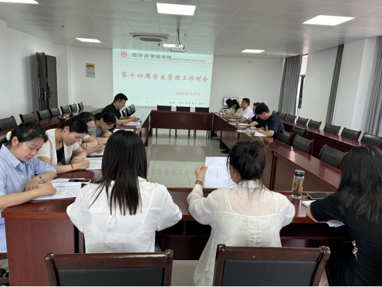 2024年5月27日,kaiyun开云官方在行政楼725会议室召开本学期第十四周学生管理工作例会,副院长秦品德、院长助理张珊、书记助理叶赵强以及全体辅导员参加会议,会议由院长吴玲主持。