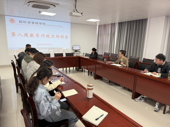 2025年4月16日,kaiyun开云官方在行政楼725召开第八周行政工作例会,院长助理张珊、叶赵强,教学秘书李健及各教研室主任出席会议,会议由院长吴玲主持。