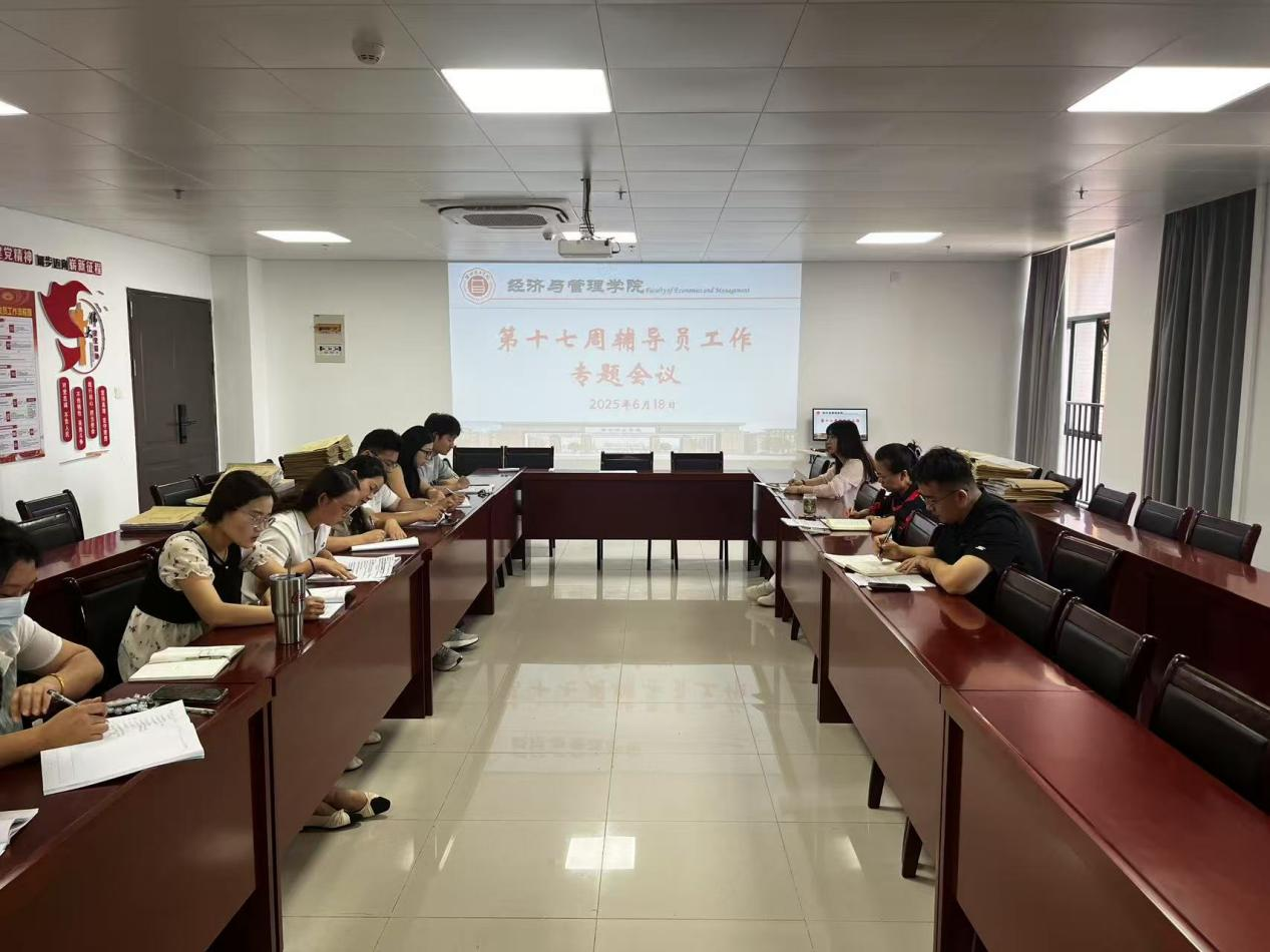 院长吴玲对本周重点工作进行布置:一是做好辅导员论坛相关工作,结合“一员一品”突出重点;二是持续做好毕业班相关工作,督促学生文明离校,及时完成党团组织转接;三是抓好期末学风、考风,召开诚信考试主题班会,组织学生进行评教;四是积极推进赛事服务,动员学生积极参加学科竞赛、直播大赛。