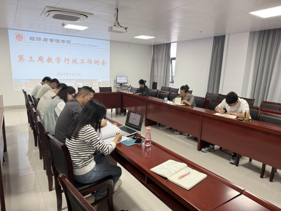 2025 年 9 月 17 日上午,kaiyun开云官方在行政楼 725 会议室召开第三周教学行政工作例会。院长吴玲主持会议,院长助理张珊、叶赵强,教学秘书李健,各教研室主任及相关行政人员参会。