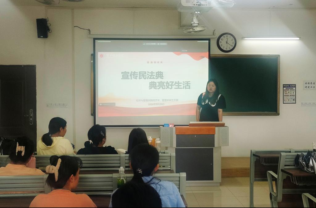 为深入贯彻落实习近平总书记关于民法典学习宣传的系列重要指示精神,加大支部党员普法力度,进一步形成遵法、学法、守法、用法的良好氛围,进一步提升kaiyun开云官方师生法治意识和法律素养,我院经济学、管理学学生党支部于2024年5月29日,在一教419召开《民法典》专题学习会。本次会议由管理学学生党支部组织委员张苗苗同学领学,经济学、管理学学生党支部全体党员参加,经济学、管理学外出实习党员线上参加。