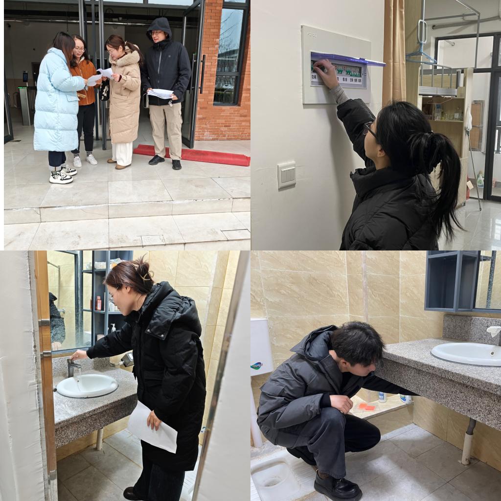 会议结束后,书记助理及团总支书记带领全体辅导员深入学院600余间学生宿舍,开展“地毯式”安全检查,逐一测试宿舍水电设备,检查是否有损坏的灯具、插座,排查安全隐患,对存在问题的宿舍及时上报维修,确保开学后宿舍水电供应正常。