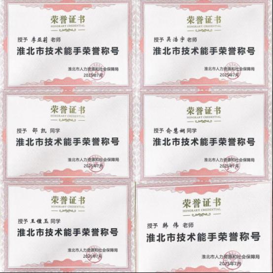 近日,经淮北市人力资源和社会保障局认定,我校教师韩伟、李亚莉、吴浩宇,学生邵凯、俞慧娴、王锺玉6名师生荣获“淮北市技术能手”荣誉称号。他们凭借扎实的专业素养和优异的实战能力,成功获此殊荣,为学校赢得了崇高荣誉,充分展现了我校在双师技能和人才培养方面的显著成效。