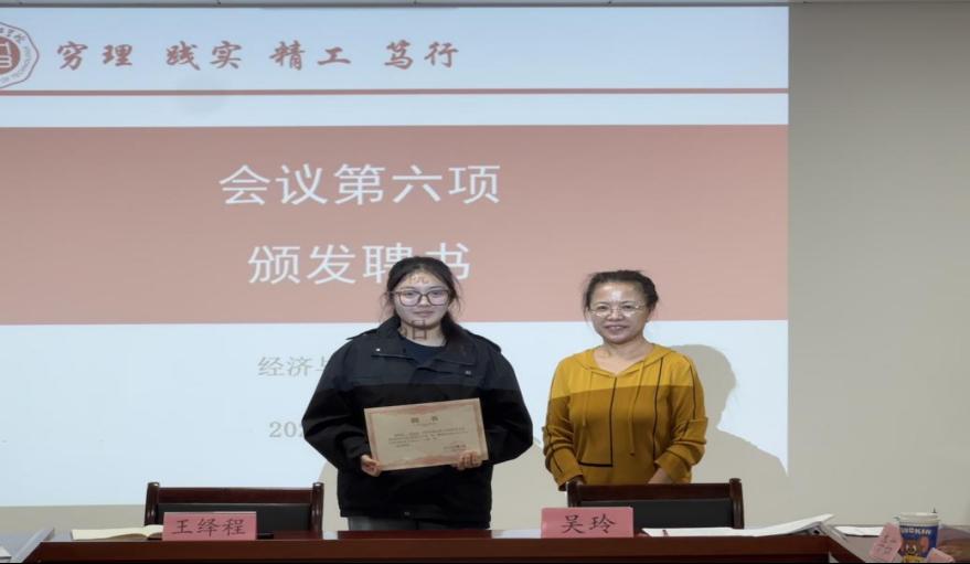 在新老成员交接环节后,吴玲院长及各分管老师为上一届学生会成员颁发聘书。这不仅是对他们辛勤付出的肯定,也寓意着新的起点与新的征程。