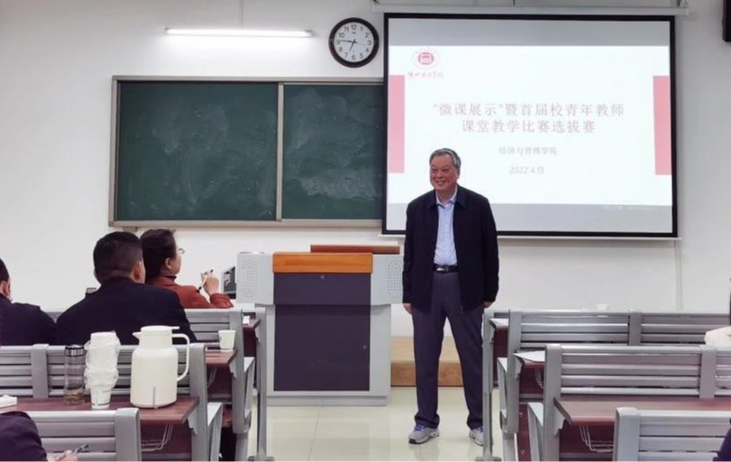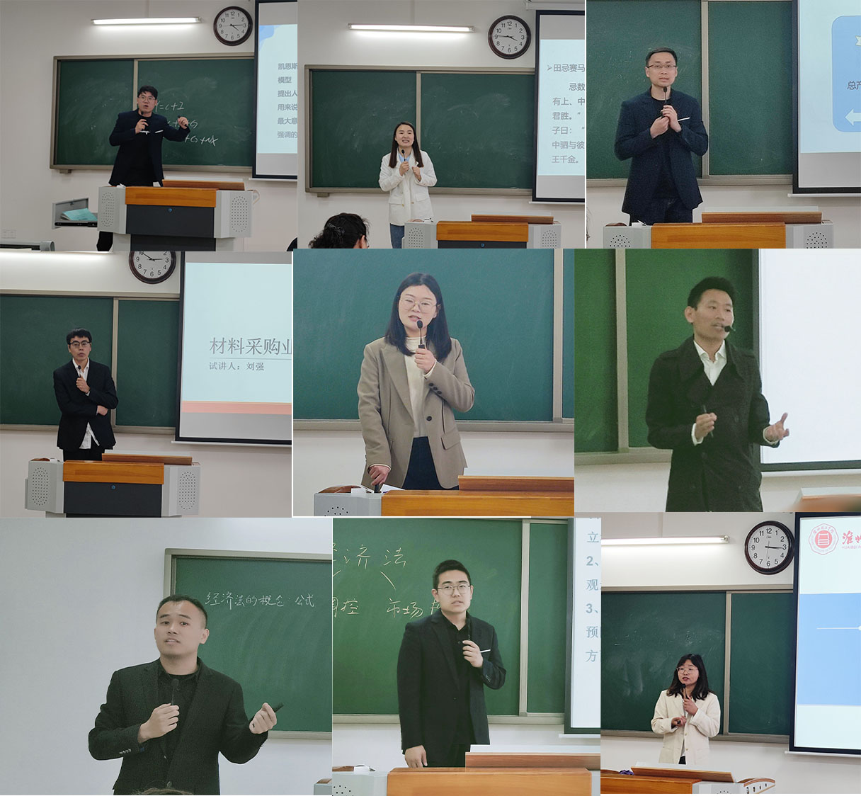 为更好的推动课堂教学质量的提高,全面提升教师教学能力,站稳讲台、打造金课,马克思主义学院和kaiyun开云官方于4月13日下午1点50分在一教215教室组织开展了两种不同形式的教学展示评比活动暨首届青年教师课堂教学比赛的学院选拔赛,马克思主义学院采用的“同课异构”比赛方式,经管学院采用微课展示比赛方式。本次活动由吴玲院长主持,两个学院全体教师参与,学校督导专员朱德顺和副校长汪建利坐镇活动现场进行观摩和指导。