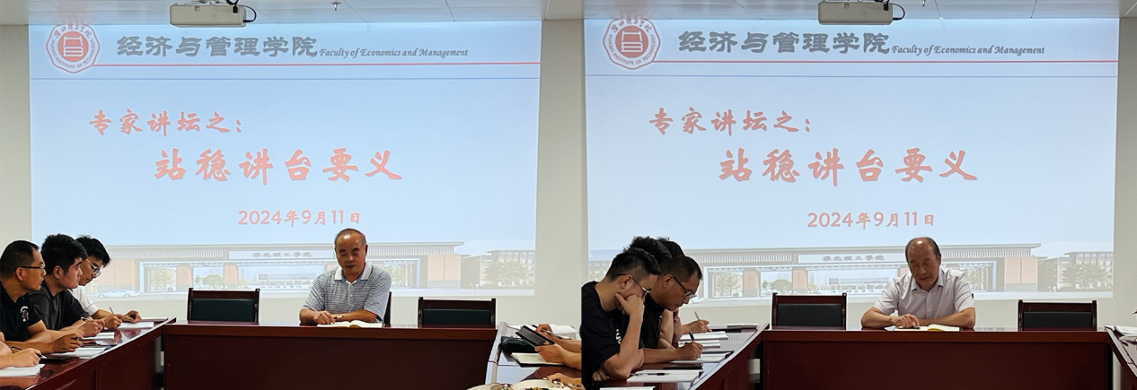代凤礼和徐公伟两位教授依据前期参与学院新进教师的岗前培训考核和开学第一天听课的情况,聚焦青年教师在教学中的优点和问题,以提升教学技能、站稳讲台为主题,进行了精彩的报告。两位专家肯定的各位老师基本功和认真的态度,同时指出教学过程中存在的问题如课程重点不突出、教学启发性不够、课程设计有待优化、逻辑性有待加强等。教授们凭借自身丰富的教学实践经验,从“热爱”强调道德和责任说起,从备课、编写大纲、选教材、写教案、做课件、收资源、到板书和PPT以及每节课的设计给与全方位的讲解和指导。同时对青年教师寄予很高期望。