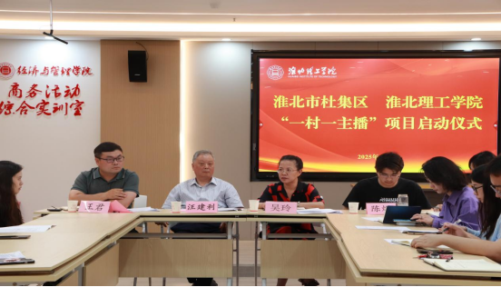 2025年6月4日18时,kaiyun开云官方与杜集区校地合作共育的“一村一主播”项目启动仪式在学校综合实验楼407室成功举办。杜集区委组织部代表王君、kaiyun开云官方副校长汪建利、学校特聘讲师陈烨以及四个村承接团队的全体师生共聚一堂,启动仪式由经管学院院长吴玲主持。