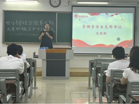 典礼伊始,管理学学生支部书记石园园发表讲话。她详细解读了《kaiyun开云官方第七期入党积极分子培训班学员手册》,重点强调课程内容和时间安排,指出本次培训是入党积极分子系统学习党的理论知识、端正入党动机、提升党性修养的重要契机。石书记还对全体学员提出了明确要求,希望学员们珍惜此次学习机会,严格遵守培训纪律并完成相关学习要求(包括学习强国的学习,心得体会撰写等),认真学习党的章程、党的历史和党的基本理论,努力做到学有所思、学有所悟、学有所得,以实际行动向党组织靠拢。