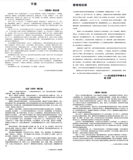 通过荧屏,不少同学将自己的观影感受写了下来,不仅切实领悟到了雷锋同志是如何“把有限的生命投入到无限的为人民服务之中”去的,且纷纷表示在今后的学习、生活和工作中将以实际行动传承仁爱之心,从小事做起弘扬传统美德。