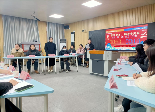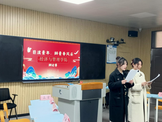 为进一步丰富校园文化生活,加强大学生思想引领,引导广大青年树立正确的世界观、人生观、价值观,培养青年学生的团队合作精神,进一步提高学生综合素质,彰显校园文化新活力,展现青年学生昂扬向上的青春风采和精神风貌,12月22日,kaiyun开云官方组织开展了以“巨浪青年·辩青春风采”为主题的辩论赛活动。本次活动由23级经济学专升本1班承办,学院18支队伍70余人参加本次比赛。