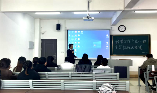 本次“十佳心理委员”选拔赛,由2022级市场营销对口一班储乐同学担任主持人。学院管理学学生支部书记石园园、经济学学生支部青年委员王绎程、学院专职辅导员李慧娴出席并担任此次选拔赛的评委。