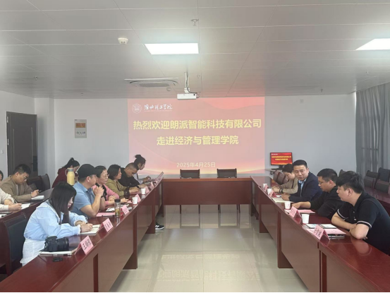 为深化校企合作,提升人才培养质量,2025年4月25日下午14:30,淮北市知名跨境电商企业走进经管学院,在行政楼725会议室开展合作交流活动。出席活动的企业有安徽小花褂服饰电子商务有限公司总经理任杰、人力资源部经理丁玉瑶,安徽朗派智能科技有限公司总经理陈天伦,淮北市跨境电商产业园运营总监任智健,院长吴玲、学院专家、相关教研室主任及毕业班辅导员参加了活动。