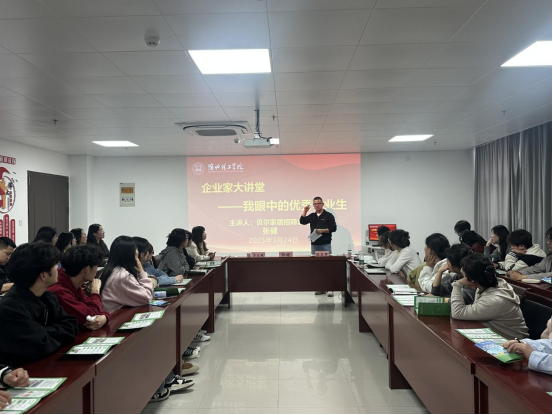 3月24日下午3点半,经管学院在行政楼725会议室面向2026届学生代表举办首场“企业家大讲堂”活动,邀请贝尔家居招聘总监张健开讲“我眼中的优秀毕业生”。张总结合行业、企业用人趋势、长期招聘面试的经历、企业用人的基本考量,从“简历层面”、“面试层面”、“入职后的优秀表现”三方面进行了老总眼里优秀毕业生的经验分享,指导学生如何结合专业优势制定职业目标、优化简历与面试技巧,高起点的开启自己的职业生涯。学生们积极参与互动,就职业发展路径、薪资福利、专本专业不一致是优势还是劣势等问题与张总展开深入的交流。学生纷纷表示,大讲堂“干货满满”,同学们“收获多多”。